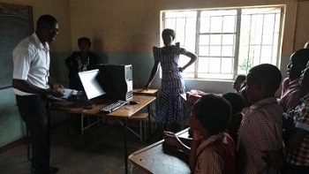 パソコンの授業を見学させていただいたり、PCルームとなる予定の設備の状況を聞いたり見たりした。ちなみに、授業ではパソコンが1台しかないため、PCのマウスのスペルを書かせたり、当てられた人のマウスの持ち方を全員で見る、といった授業になっている様子。