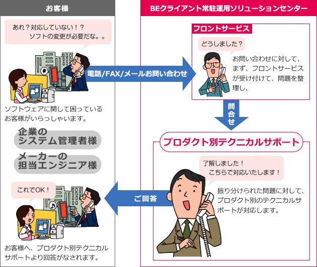 - お客様へ、プロダクト別テクニカルサポートより回答がなされます。